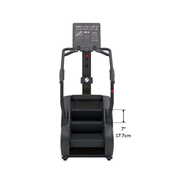 - Самая большая в индустрии высота ступенек 22,86 см позволяет проводить на тренажере более интенсивные тренировки