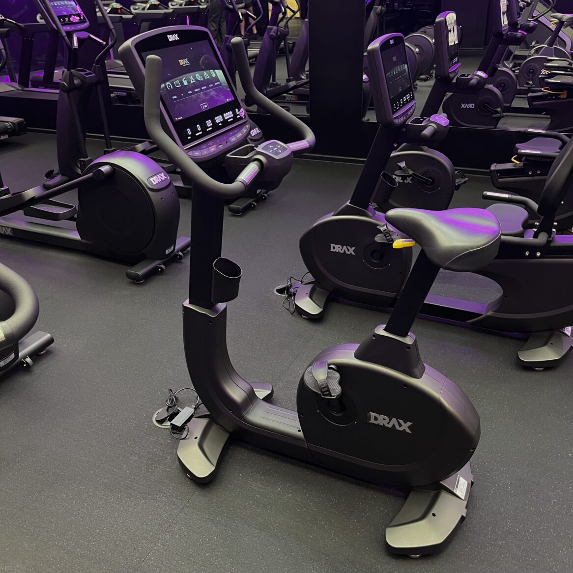 - Конструкция с отсутствием препятствия для ног обеспечивает легкую посадку на тренажер и является уникальным решением для вертикальных велотренажеров