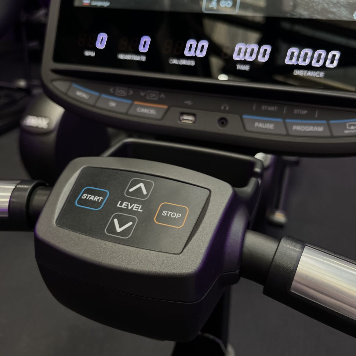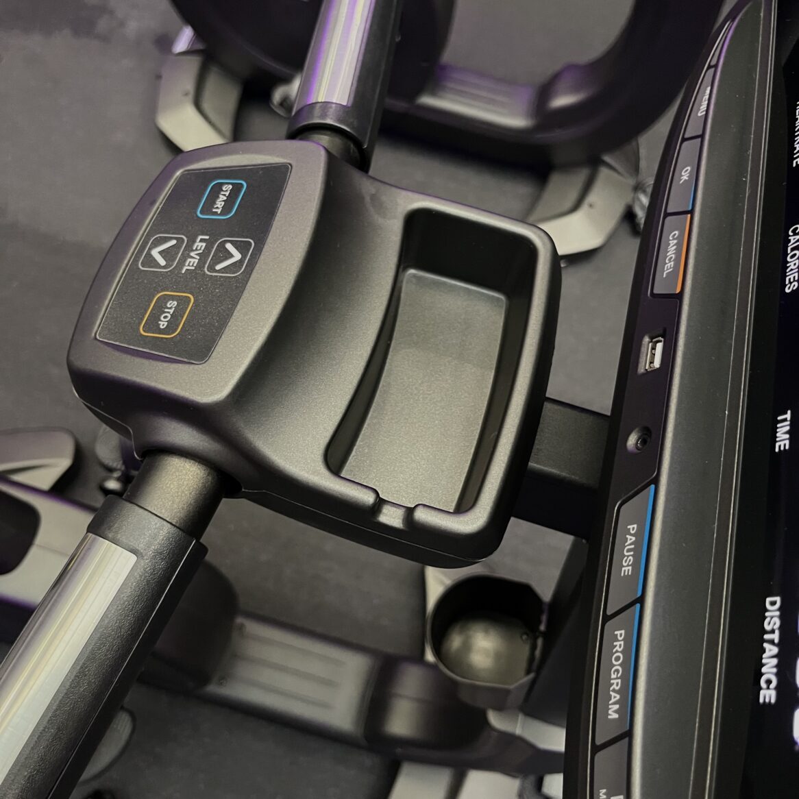- Дополнительные мини-консоль и панель управления на основной консоли оснащены клавишами изменения уровня сопротивления и кнопками быстрого доступа к функциям меню