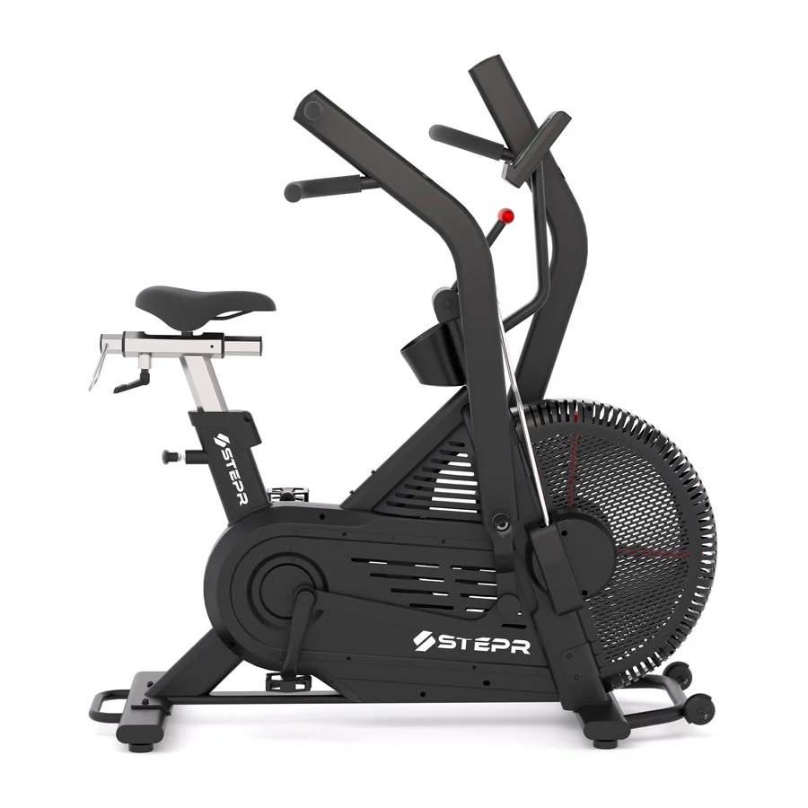 Аэробайк STEPR BIONIC BIKE XL VPR можно охарактеризовать как модель, обладающую повышенной прочностью и функциональностью, это не обычный механический велотренажер, а настоящий танк! В тренажере применяется аэродинамический тип передачи нагрузки с Технологией Изменяемого Воздушного Сопротивления VPR (Variable Pitch Resistance), обеспечивающей очень широкий диапазон изменения сопротивления — от ультра-слабого для скоростных тренировок до супер-сильного для силовых тренировок. Минимальный уровень сопротивления позволяет тренироваться на тренажере новичкам или пользователям, только набирающим спортивную форму. В то время как максимальный уровень нагрузки бросит вызов даже самым сильным и тренированным атлетам.