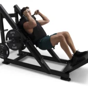 - Прогрессивная конструкция из нескольких, соединённых между собой рычагов, позволила перенести точки нагрузки дисками в нижнюю часть тренажёров и обеспечить более плавные и точные траектории движения, максимально соответствующие биомеханике тела человека.