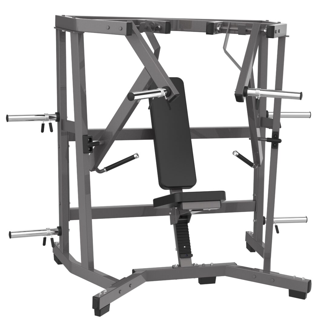 - Расположенные над головой оси вращения рычагов обеспечивают биомеханически идеальную траекторию для жимовых упражнений
