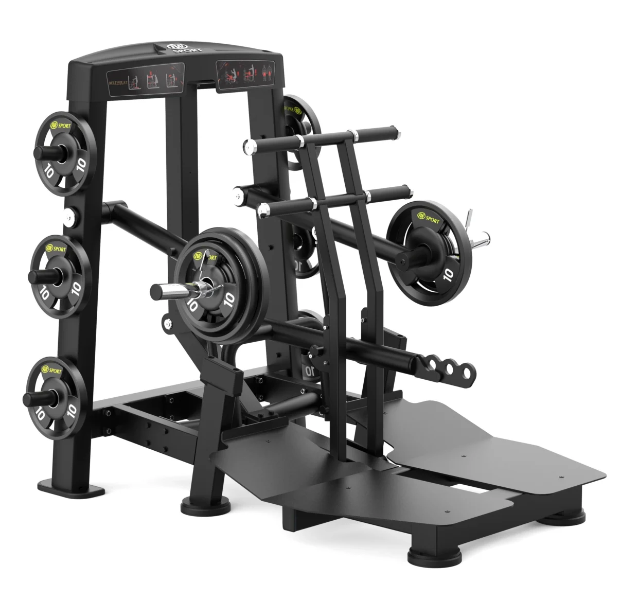 - Опорные платформы для ног особой формы с изгибом позволяют выполнять приседания с выставленными вперед ногами