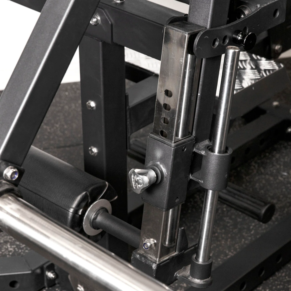 - Нагружаемый дисками рычаг имеет выверенный угол для оптимального выполнения упражнения «обратная гиперэкстензия»
